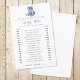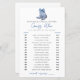 Något blått innan jag gör! Elegant Cowboy Boot Möhippa Game - Gissa vem. Lägg till lite roligt till möhippan med den här leksaken där gästerna försöker gissa om varje fråga gäller för bruden eller brudgummen, skapar det på ett lättvindigt sätt för att se vem som vet paret bäst. Det här spelkortet har ett par finare blå cowboystövlar som är förankrade med en stor vattenfärg. Boten är dekorerade med en blommigt eller kiniseriinspirerad mönster, ge utformningen och eleganten vrider på den rustiska land-charmen. En snyggt blandning av mörk blått och grått typsnitt, som kombinerar handskrivet skript och klassisk serif-typografi för ett polerat, modernt utseende. Perfekt för ett "Nåt blått före mig"-tema också. Anpassadet är helt och hållet att du kan redigera frågor, ikoner, teckensnitt färg och bakgrund för att matcha möhippans tema. Den här aktiviteten ger en charmerande och personlig beröring till alla firande. Detta kallas ibland också "skospelet", eftersom brudgummen ibland kommer att besvara dessa frågor genom att hålla upp en sko.