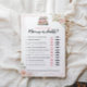 Gör din babydusch roligt och interaktiv med Gissa vem? Mamma eller pappa Game! Gästarna kommer att gissa vilken förälder som är mest benägen att göra vissa sak som kommer att ta hand om lägre avgifter, som kommer att sjunga de bästa ullabiserna, eller som har krävt mest sötsaker under graviden! Det här underhållande spelet ger skratt och glädje när man firar blivande föräldrar.
