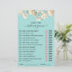 Möhippan gissar vem som sa att briden eller triomduschmatchen har vattenfärgen magnolia gren och illustrerar bruden på baksidan. Koordinerar inbjudan till magnolia bride och party decor. Frågorna kan anpassas till dina egna genom att klicka på knappen Anpassa.