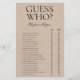 Den här vackra, rustiska gissaren Vem? Lakan är enkelt och charmigt i HBT-möhippan - perfekt för varje dusch där två kvinnliga identifierande partner firas. Denna roligt och det enkla spelet kommer säkert att föra med sig mycket skratt till vilken möhippa som helst. Bara ge per lakan till varje gäst (glöm inte pennorna) och låt roligten börja! Du blir förvånad över hur många olika sak människor som känner till bruden. Om du vill göra det här spelet till ditt eget väljer du Anpassa den här mallen och skriver i namn på briderna och deras första initialer.