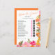 Gör din möhippa extra-roligt med det här spelkortet "Bride eller Groom Gissa Vem?" som har en pulserande blommigt med vattenfärg. Med en blandning av lekfulla och lättretade frågor som "Vem tog första steget?" och "Vem är bäst dansare?" kan gästerna ringa sina svar och se vem som vet paret bäst. Den handmålade blommigten för rosa, orange och gult ger en skarp och livfull beröring, perfekt för boho eller blommigt-temade duschar. En underbar isbrytare och keepsaké för bruden att bli!