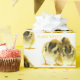 Detta gulliga slående in papper presenterar två gulliga bebischickar på en vitbakgrund med texten, "gissningen vad?". Fotografi som skapas av denvinnande fotografen Maria Jeffs.