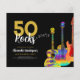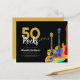 50 Rocks 50-årsfestinbjudningar med tre coola akvarellgitarrdesigner. En elgitarr med eldflickermönster och röd pickguard, en flerfärgad semiakustisk gitarr och en psykedelisk klassisk akustisk gitarr konstillustration med personlig svart och guld modern cool typografi. Denna lättanvända mall skapar den perfekta inbjudan att fira femtio i rock n roll-stil och är idealisk för en gitarrist, musiker och musikälskare. Varje gitarrspelare kommer att berätta att man aldrig kan ha för många gitarrer. Denna coola moderna musikinstrumentdesign firar musikenergin hos detta underbara musikinstrument och är det perfekta sättet att rocka en femtioårsfirande. Originell konst av konstnären Catherine Sweetman