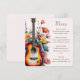 Lägg till en harmonisk touch till era mottagningstabeller med denna vackert designade meny, skapad för ett romantiskt musiktematiskt bröllop. Den djärva gitarrbröllopsillustrationen är ihopparad med moderna eleganta vattenfärgblommor, som blandar musikalisk konsert och rustik lantlig karaktär med den mjuka charmen från en äng med vilda blommor på en sommarbröllop. Mot en naturlig champagne-ivori krämfärgad ecru-bakgrund känns layouten raffinerad och balanserad - perfekt för ett bröllop med en gitarrspelande musiker och en botanisk stuga trädgård vårbröllopsatmosfär.