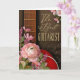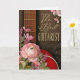 En vackert utformad gratulationskort för alla gitarrister - professionella, studenter, artister, musiklärare, bandmedlemmar, gatumusiker, klassiska gitarrister eller hobbygitarrister. Designen visar en varm, djupbrun gitarrhals med synliga strängar och band, i kombination med en rik röd gitarrkropp. Runt instrumentet finns frodiga blomsterarrangemang av mjuka rosa ranunkler, mauveblommor, lavendelkvistar, ömtåliga bladgrönsaker och mjuka pastellfärgade kronblad placerade mot en bakgrund av svaga musiknoter. Kortet känns elegant, konstnärligt och passionerat musikaliskt - perfekt för någon som lever genom ljud och rytm.