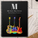 Funky Psykedelisk Personlig Musik Gitarrlärare lektionsanteckningsbok. Oavsett om du är musiklärare, student eller gitarrist, erbjuder denna anteckningsbok en anpassningsbar mall som låter dig anpassa den med din namnmonogram och gitarrmusiklärare perfekt för att växa ditt varumärke. Organisera dina musiklektioner, sångtexter och idéer med stil med denna Funky Psykedelisk Musik Gitarrlärare lektionsanteckningsbok. Med livfulla popkonstillustrationer av elgitarr, akustisk gitarr och halvakustiska gitarrer i djärva, psykedeliska färger är denna planeringsbok den perfekta kombinationen av funktion och kreativitet. Den unika designen firar energin och mångfalden hos gitarrer, vilket gör den till en idealisk present till alla musiker, gitarrister eller musikkännare. Som alla gitarrister kommer att berätta för dig, finns det alltid plats för fler gitarrer och denna roliga, färgglada anteckningsbok är en hyll