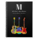 Funky Psykedelisk Personlig Musik Gitarrlärare lektionsanteckningsbok. Oavsett om du är musiklärare, student eller gitarrist, erbjuder denna anteckningsbok en anpassningsbar mall som låter dig anpassa den med din namnmonogram och gitarrmusiklärare perfekt för att växa ditt varumärke. Organisera dina musiklektioner, sångtexter och idéer med stil med denna Funky Psykedelisk Musik Gitarrlärare lektionsanteckningsbok. Med livfulla popkonstillustrationer av elgitarr, akustisk gitarr och semiakustiska gitarrer i djärva, psykedeliska färger är denna planeringsbok den perfekta kombinationen av funktion och kreativitet. Den unika designen firar energin och mångfalden hos gitarrer, vilket gör den till en idealisk present till alla musiker, gitarrister eller musikkärlekare. Som alla gitarrister kommer att berätta för dig, finns det alltid plats för fler gitarrer och denna roliga, färgglada anteckningsbok är en hy