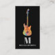 Skapa ett stilrent och minnesvärt första intryck med detta minimalistiska QR-kod-kort för gitarrlärare, med detaljerad färgrik psykedelisk elgitarrkonst mot en snygg svart bakgrund. Detta professionella gitarrist-kort innehåller en lättredigerbar mall för att lägga till din personliga monogram, namn, kontaktinformation och QR-kod, vilket gör det perfekt för modern varumärkesbyggande.