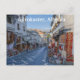 Postkort till Gjirokaster, Albanien visar en gata med butiker.