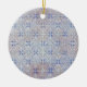 This ornament features a soft, frosty snowflake pattern arranged in a beautiful repeating lattice. Shades of icy blue, winter white, and soft beige blend together to create a calm, peaceful design with a vintage wintry feel. Each snowflake sits neatly in its own place, forming a delicate geometric tapestry that brings to mind frosted windows, early morning snow, and quiet winter landscapes.