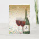 Grön vinflaska med två röda viner i glas och konfetti för 76-års bröllopsjubileum.