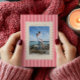 Anpassad Alla hjärtans dag-kort med foto, randigt bakgrund och ren, modern design.