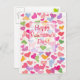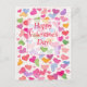 Ett lysande, lyckligt vykort på Alla hjärtans dag som dekoreras med färgstarka godis i stil-hjärtan som målas i vattenfärg med rosa spatter för att få effekt.