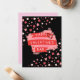 "Happy Valentine's Day" skrivet på framsidan, och tomt på baksidan så att du kan lägga till ditt eget personliga meddelande för hand. Baksidan är tom för ett anpassat meddelande, vilket gör detta kort perfekt för romantiska anteckningar, hjärtliga valentinehälsningar eller ett personligt kärleksmeddelande med dina egna ord. Perfekt för partners, makar eller någon som uppskattar retro valentinekort, djärv grafisk design och tidlös mid-century-estetik. Ett stilrent val för Alla hjärtans dag som känns både roligt och designmässigt. Vackra rosa och röda nyanser på en fin, kontrasterande svart bakgrund.