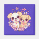Två söta valpar omgivna av hjärtan och blommor