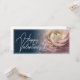 Nära rosa ros på blå bakgrund och Valentines hälsning. Resten av kortet är fritt att utforma.