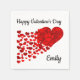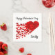 Grattis till Alla hjärtans dag med party! En sprej av röda hjärtan som flödar över designen, med "Glad Alla hjärtans dag" i klassiskt svart teckensnitt, med anpassade namn