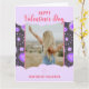 Sprid kärlek denna Alla hjärtans dag med det här romantiska och feminina kortet som enkelt kan anpassas med ditt namn, foto och meddelande för att göra det verkligt unikt! Kortet har en fantasifull hjärta- och blomm-inspirerad design i livfulla lila nyanser på en chic mörkgrå bakgrund. Det feminina och lekfulla mönstret inkluderar hjärtformer, ömtåliga blomsterelement, lövakcenter och charmiga prickar, vilket gör det till det perfekta Alla hjärtans-kortet för dina vänner, familj och nära och kära.