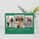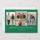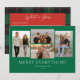 Dessa julkort i storleken 18 x 13 cm har platser för fyra (4) av dina favoritfoton i svart-vitt, två stående och två liggande, på en grön granbakgrund med den redigerbara hälsningen "Merry Everything". Uppdatera dina vänner och familj om årets händelser på baksidan, som har en grön och röd rutig bakgrund med platser (i elfenbensvit) för hälsningen "What a Year", meddelande, namn och år på en röd bakgrund.