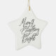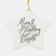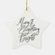 Ge din dekor en tidlös julstämning med denna keramiska stjärna med texten ”Merry & Everything Bright”. Den är utformad i en ren och modern stil och har svarta skrivstilbokstäver på en slät vit keramisk stjärna, med en metallisk gul upphängningssnöre som ger en varm och festlig touch. Dess minimalistiska estetik passar vackert ihop med skandinaviska, neutrala, lantliga och klassiska juldekorationer.
