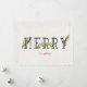 Vacker julkort har en texturerad linnebakgrund. En öppen svart typ stavar ut "MERRY" med stora versaler och har ömtåliga julgröna och järnek med röda bär invävda. Nedanför står "Everything" skrivet med en delikat röd, finurlig script. Baksidan av kortet säger "Wishing you much joy this holiday season" med röd script. En gren järnek med röda bär skiljer hälsningen från din personliga text, som inkluderar ditt efternamn och förnamnen på varje familjemedlem. Om du behöver hjälp med personlig anpassning kan du antingen skicka ett meddelande här eller mejla mig på digiscrapthat@comcast.net. Jag hjälper dig gärna att skapa det perfekta julkortet eller presenten till dina vänner och familj.