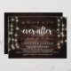 Vacker Glad Alltid Efter-fest, Bröllopsutflykt anmälan / Bröllops inbjudningskort, på Rustik bondgård Trä, Strängljus design. Detta är perfekt för din bröllopsmottagning och efterbröllopsfirande. Lägg till dina detaljer i matchande typsnitt / bokstäver.