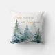 Vattenfärgade vinterträd i gröna nyanser i kombination med script och modern typografi kastkudde.