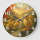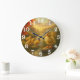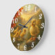 En fantasifull naturlig klocka som avbildar en mammaanka som står på en sten med fyra ankungar i en glittrande bäck, omgiven av frodig gräs och röda höstlövar. Vita siffror på en varmtonad bakgrund skapar en mysig säsongsstämning – perfekt för rumsdekoration eller naturälskare gåvor.