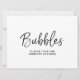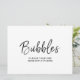 Ett stilrent, handlettererat avskedsskylt med texten "Bubblor"