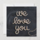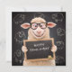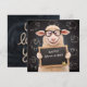 Glad Baaadagen Roligt Får Platt Kort. Konstnären har lämnat lite utrymme på svarta tavlan för mottagaren att skriva ett personligt meddelande/ namn. “Vi älskar dig” står skrivet med ullgarn på baksidan av kortet.