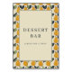 Denna charmiga bordsskylt för bröllop har ett lekfullt päronmönster runt en central beige rektangel, vilket skapar en inbjudande och glad atmosfär. Designen visar upp livfulla gul-orange päron med mörkgröna blad på vit bakgrund, vilket frammanar en känsla av natur och överflöd. Elegant serif-typografi framhäver texten "Dessert Bar", och inbjuder gästerna att unna sig söta godsaker. Perfekt för att tillföra en lekfull touch till din dessertstation, är denna skylt idealisk för att förstärka den övergripande atmosfären på din speciella dag.