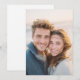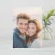 Denna bröllopsinbjudan presenterar ett varmt och intimt fotografi av två individer som ler nära varandra och fångar ett uppriktigt och tillgiven ögonblick. Designen använder en mjuk färgpalett med naturliga hudtoner som kompletteras av dämpade blå och krämfärgade toner i deras kläder, vilket skapar en avspänd och inbjudande atmosfär. Fokus ligger på den äkta kopplingen mellan personerna, som framhävs av det grunda skärpedjupet som suddar ut bakgrunden och betonar deras uttryck. Den övergripande stilen är realistisk och hjärtlig, perfekt för par som vill förmedla kärlek och lycka på sina speciella dagars inbjudningar.