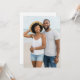 Denna bröllopsinbjudan presenterar en varm och inbjudande fotografi av två individer som står tätt tillsammans på en strand och fångar essensen av samhörighet och glädje. Designen visar upp en mjuk färgpalett med ljust beige sand, blå havsvågor och jordnära toner från deras lediga kläder, vilket skapar en avspänd och sommarlik känsla. Den fotografiska stilen betonar äkthet och framhäver äkta känslor i en lugn och strandnära miljö. Perfekt för par som söker ett avspänt och glatt tema, frammanar denna inbjudan värme och positivitet, idealiskt för att fira kärlek vid havet.