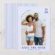 Platt Spara datum-kort, Storlek: 13.3 x 13.3 cm, Papper: Signature matt, Hörn: Kvadrat, Kuvert: Vit, Tryckkvalitet: Standard