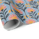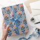 Detta inpackningspapper har ett glatt blomsterliknande mönster med stiliserade blommor i rosa och orange nyanser, mot en ljusblå bakgrund. Designen inkluderar mörkblå blad och stjälkar, vilket skapar en balanserad och harmonisk rutnätslayout som är både modern och lekfull. Perfekt för att lägga till en livfull touch till vilken present som helst, förmedlar detta papper en livlig och energisk stämning, idealiskt för firanden eller vardagliga överraskningar. Dess samtida stil med retroinfluenser gör den mångsidig för olika tillfällen.