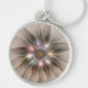 Glad blomster abstrakt beige brun blomster fraktal rund silverfärgad nyckelring