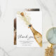 Vårt glada champagne bröllopspar engagement foto tackkort har en modern design med en falsk guld champagneflaska. Lägg till ditt favoritfoto på baksidan av kortet och du är klar. Detta kort är det perfekta sättet att uttrycka din uppskattning till dina nära och kära som har hjälpt till att göra din förlovningsfest ännu mer speciell.