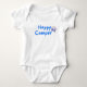 Denna söta och roliga bodysuit har modern typografi "Glad Campare" i blått med en söt campingbil illustration. Perfekt för spädbarn, nyfödd eller present vid bebisfest.