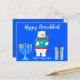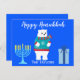 Skicka Polar Björn hälsningar denna Hanukkah med detta vackra vykort. Med en blå bakgrund finns en isbjörn i mitten iförd en röd och blå tröja med en halsduk. "Happy Hanukkah" visas ovanför björnen med en menorah till vänster och en present till höger. Anpassa ditt namn längst ner.