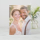 Denna bröllopsinbjudan presenterar ett varmt och intimt fotografi av två individer som ler nära varandra, och fångar ett uppriktigt ögonblick av glädje och samhörighet. Designen använder en mjuk färgpalett med krämiga vita nyanser, subtila bruna toner och antydningar av grönt från den suddiga naturliga bakgrunden, vilket skapar en lugn och romantisk atmosfär. Den högupplösta bilden betonar realism och äkthet, vilket gör den perfekt för par som söker en elegant men ändå hjärtlig touch för deras speciella dag. Det övergripande humöret är ett av lycka och kärlek, idealiskt för att fira ett meningsfullt livsmoment.