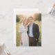 Denna bröllopsinbjudan presenterar ett vackert sammansatt fotografi av två individer som står tätt ihop i en utomhusmiljö, omgivna av högt gräs och vilda blommor. Det varma, gyllene ljuset antyder en lugn soluppgång eller solnedgång och skapar en glad och intim stämning. Färgpaletten omfattar mjuka jordnära toner med livliga gröna och gula nyanser från det naturliga landskapet, kompletterat av den ljuscrèmefärgade klänningen och den mörkblå kostymen som de avbildade personerna bär. Designen fångar ett ögonblick av äkta gemenskap och glädje, vilket gör den perfekt för par som uppskattar naturen och avslappnad elegans.