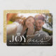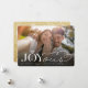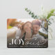 Detta moderna och eleganta jul-/förlovningskort / save the date-kort har ordet 'Joyous' i en blandning av klassisk serif och infallsrik kalligrafiskrift med parets monogram inbäddat i en unik diamantring som överlappar ett foto med full bleed.