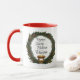 en fantastisk krans prydd med järnek och tallkottar, bilden visar också julkrubban, en påminnelse om julens sanna anda.
