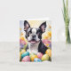 Den här lyckliga lilla hunden är säker på att han är glad över Boston Terrier.