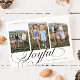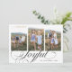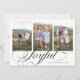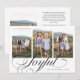 Minimalistisk och modern helgdagskortmall med 3 bilder med en skriftext som säger "glad" längst ner. Du kan också lägga till en annan bild och ett meddelande på baksidan.