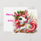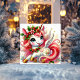 Glad enhörning med järnek och gyllene hovar julkort