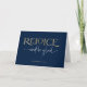 Detta eleganta och enkla icke-fotografiska julkort säger "Gläd er och jubla" i modern fet text och handskriven skrift. Framsidan av kortet är en blandning av falskt guld och vit typografi på en mörkblå marin bakgrund. En modern och klassisk look perfekt för dina religiösa kristna högtidliga hälsningar.