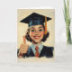 En livlig och glad illustration av en ung examen som bär en traditionell akademisk hatt och kappa, strålar av upphetsning och ger tummen upp. Detta konstverk fångar glädjen och stoltheten över akademisk framgång, vilket gör det perfekt för examensrelaterade teman, utbildningskampanjer och motiverande innehåll.