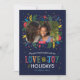 Prisvärda anpassade julkort med enkla mallar för anpassning. Denna roliga och färgglada design har en fantasifull blommig ram och söt handgjord typografi. Texten lyder "May Your Heart Be Filled with the Love and Joy of the Holidays". Anpassa det med dina foton, familjenamn, året eller annan anpassad text. Baksidan har utrymme för ytterligare foton eller text. Använd designverktygen för att redigera texten, lägga till fler foton och skapa en unik julkortdesign.