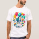 Fira fars dag med denna livfulla och lekfulla design! Den har en siluett av en pappa och barn i rörelse, omgiven av en explosion av färgglada ballonger, hjärtan och diverse leksaker som en baseboll, lollipop och keps. Den dynamiska kompositionen och den ljusa färgpaletten fångar glädjen och roligheten i faderskapet. Perfekt för kort, kläder och presenter för att få vilken pappa som helst att känna sig speciell och uppskattad på sin dag.